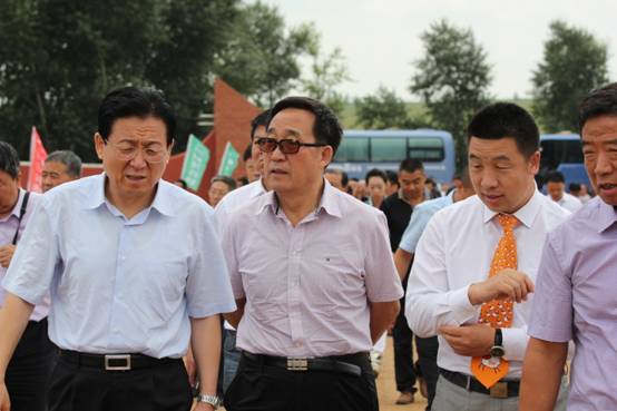 內(nèi)蒙古農(nóng)牧業(yè)廳副廳長(zhǎng)云挨厚(左二)等領(lǐng)導(dǎo)為工廠(chǎng)開(kāi)業(yè)剪彩