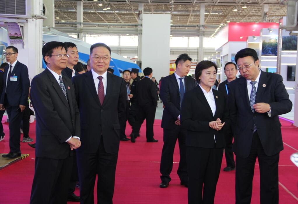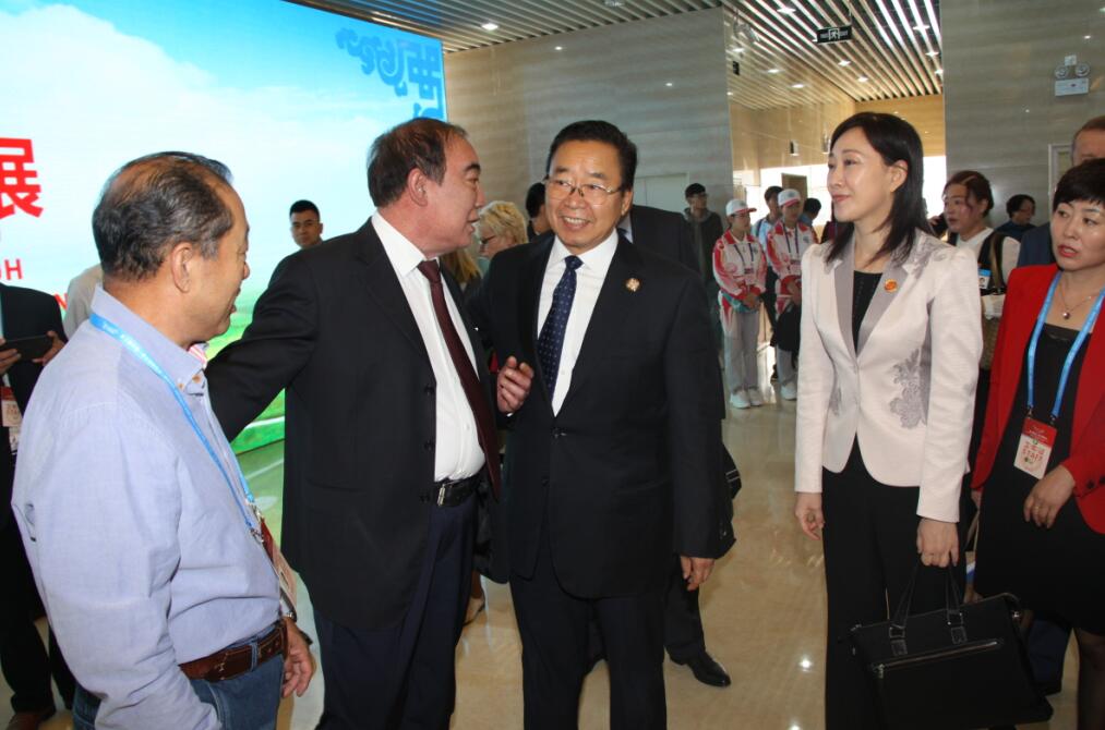 自治區(qū)農(nóng)牧業(yè)廳廳長(zhǎng)郭健、副廳長(zhǎng)云挨厚陪同內(nèi)蒙古自治區(qū)政協(xié)主席任亞平一行參觀國(guó)際綠色農(nóng)畜產(chǎn)品展