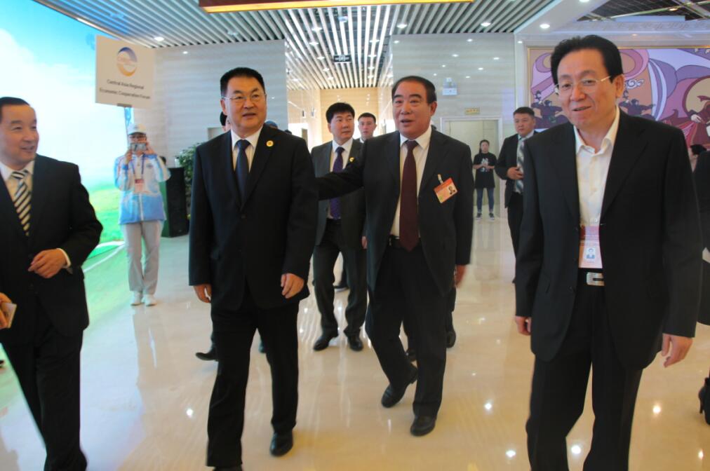自治區(qū)農(nóng)牧業(yè)廳廳長(zhǎng)郭健、協(xié)會(huì)執(zhí)行會(huì)長(zhǎng)林永亮陪同自治區(qū)人大常委會(huì)黨組副書記、常務(wù)副主任呼爾查一行參觀國(guó)際綠色農(nóng)畜產(chǎn)品展