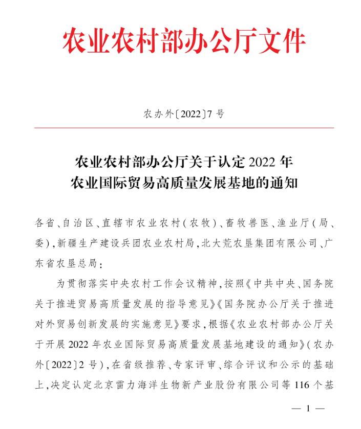祝賀:我區(qū)5家企業(yè)被認定為2022年度農(nóng)業(yè)國際貿(mào)易高質(zhì)量發(fā)展基地
