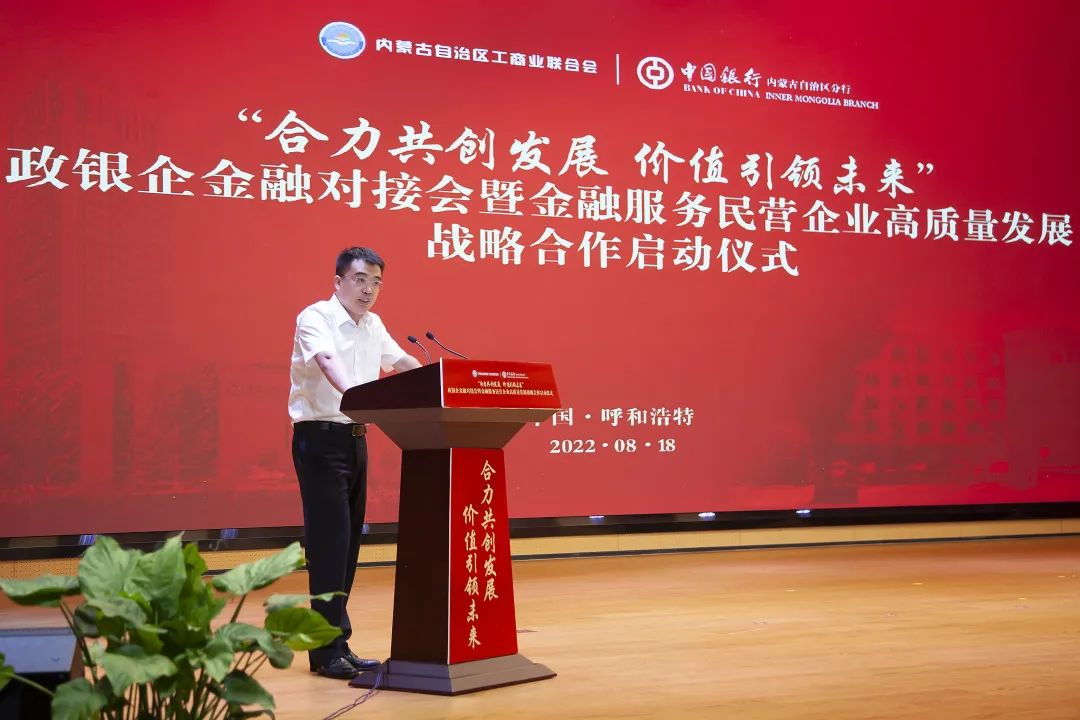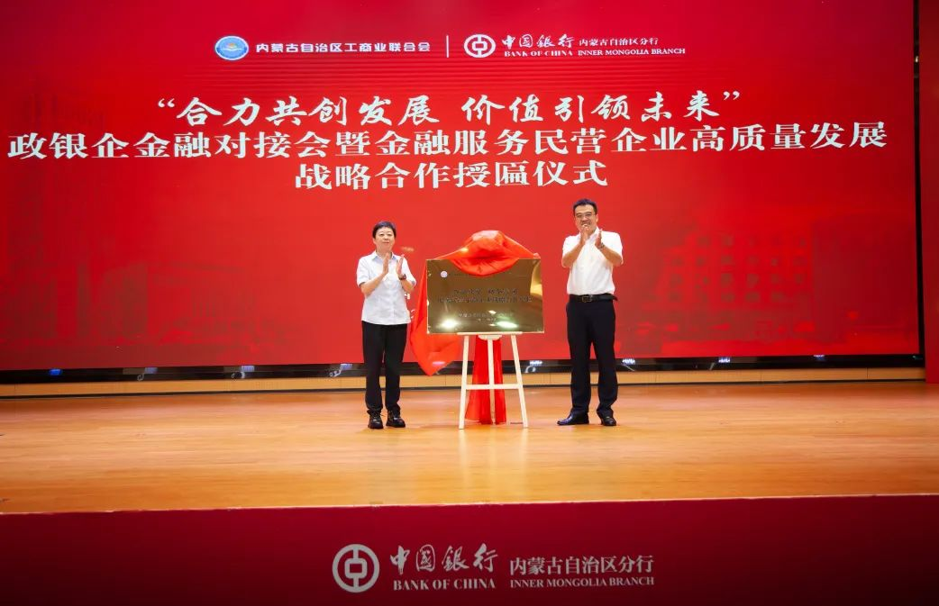 在與會人員的共同見證下,中國銀行內(nèi)蒙古自治區(qū)分行與自治區(qū)工商聯(lián)金融服務(wù)民營企業(yè)高質(zhì)量發(fā)展戰(zhàn)略合作正式啟航。