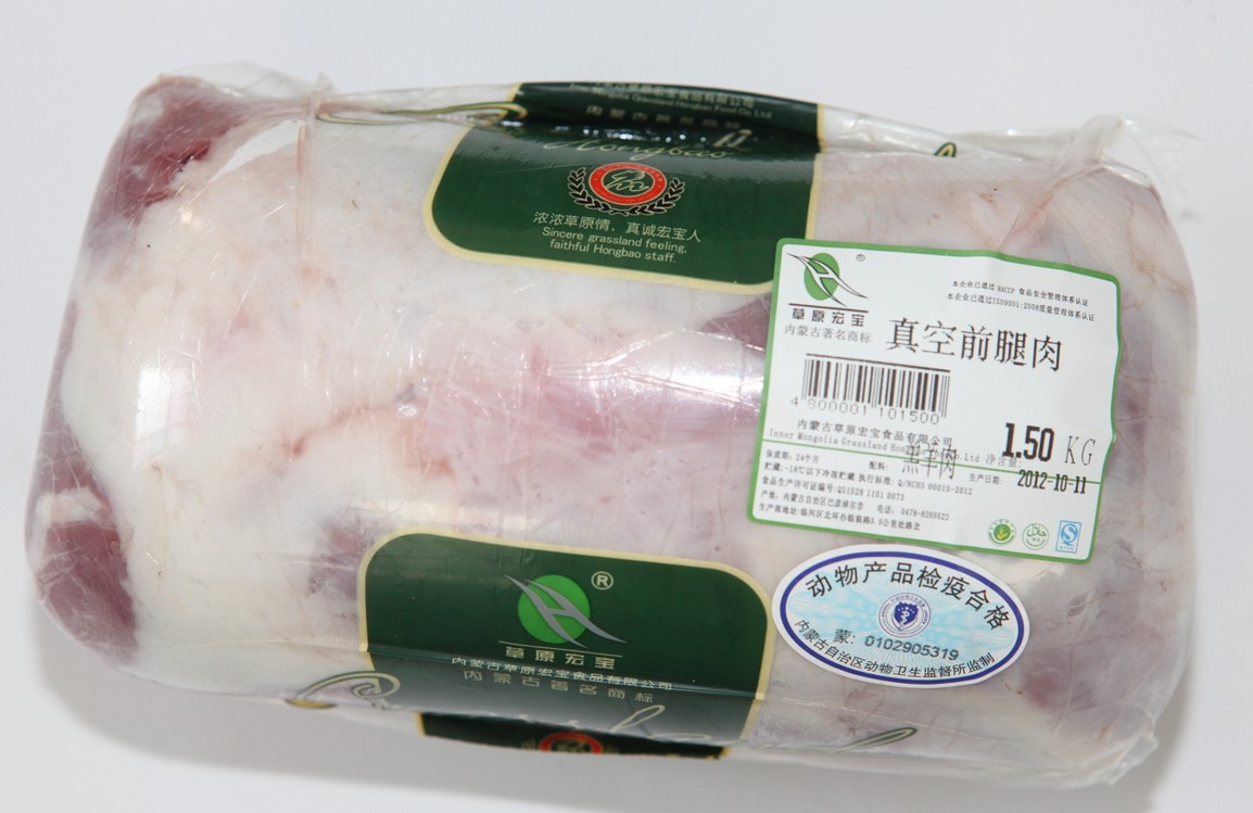 “草原宏寶”牌羊肉系列產(chǎn)品,從牧場養(yǎng)殖、屠宰分割到儲(chǔ)運(yùn)物流、商品貿(mào)易全產(chǎn)業(yè)鏈、全過程參照國家《良好農(nóng)業(yè)規(guī)范》及相關(guān)工廠、物流審核標(biāo)準(zhǔn)的要求實(shí)施可追溯控制生產(chǎn),確保安全無污染。所生產(chǎn)的原料全部選用牧場的優(yōu)質(zhì)羔羊,采用伊斯蘭教屠宰方式進(jìn)行吊宰,經(jīng)冷卻排酸、精細(xì)分割修選加工而成,被國家農(nóng)業(yè)部農(nóng)產(chǎn)品質(zhì)量安全中心認(rèn)證為“無公害食品”。