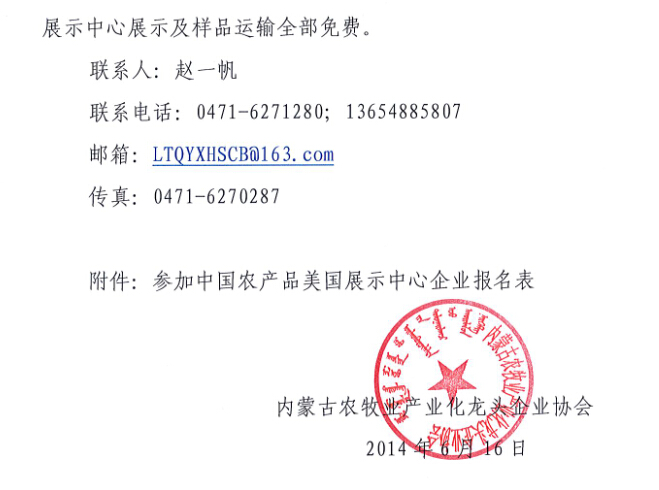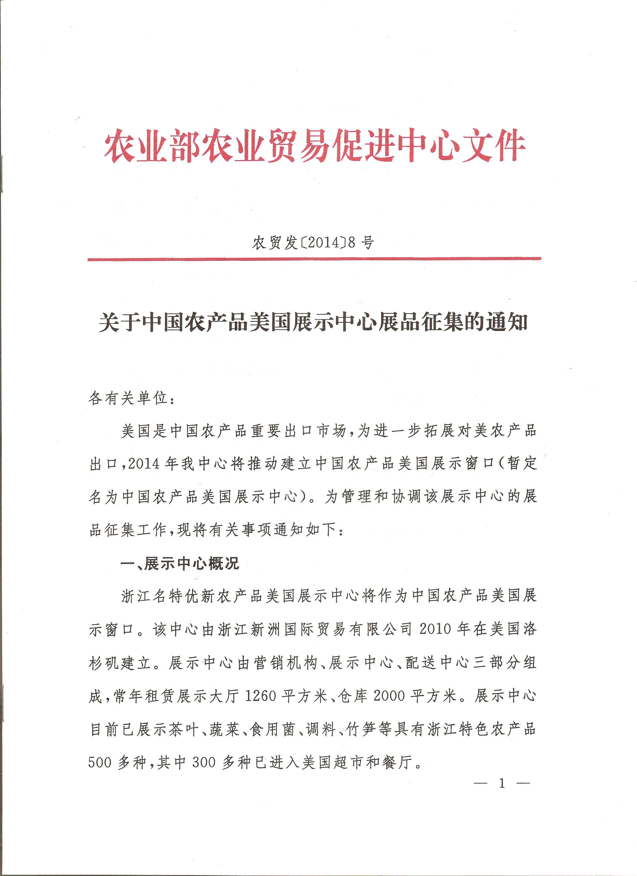 關于中國農產品美國展示中心展品征集的通知