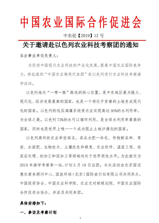 關(guān)于邀請赴以色列農(nóng)業(yè)科技考察團的通知