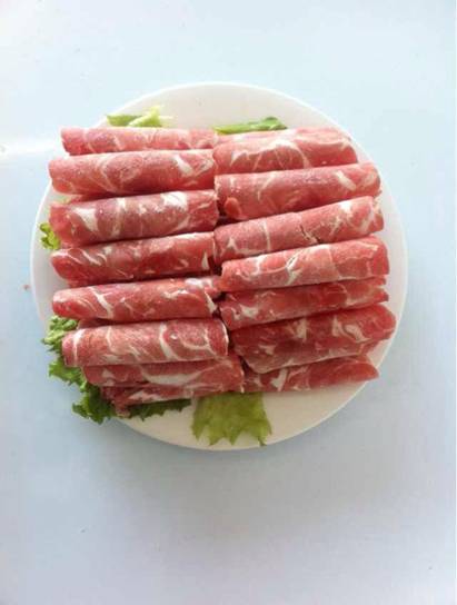 為太陽(yáng)卷。是上好的涮肉選料,選擇好的羊肉片要看顏色,真正的